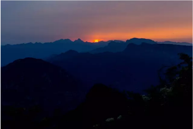 下面这图是王屋山顶观太行山日落余晖,远处连绵不断的山够你看完整个日落过程。